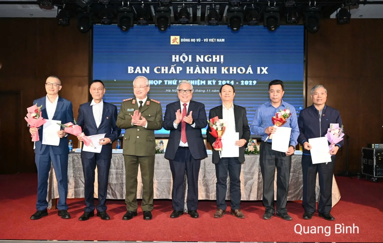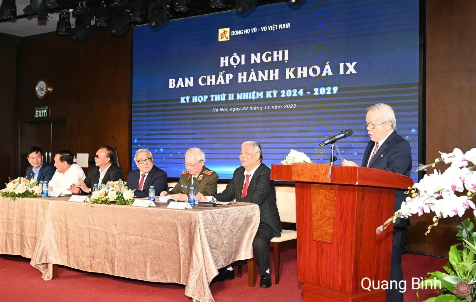 Đại tá Vũ Đình Thảng – Phó Chủ tịch HĐDH Vũ Võ Việt Nam, Trưởng ban TĐKT & KHKT báo cáo tại hội nghị