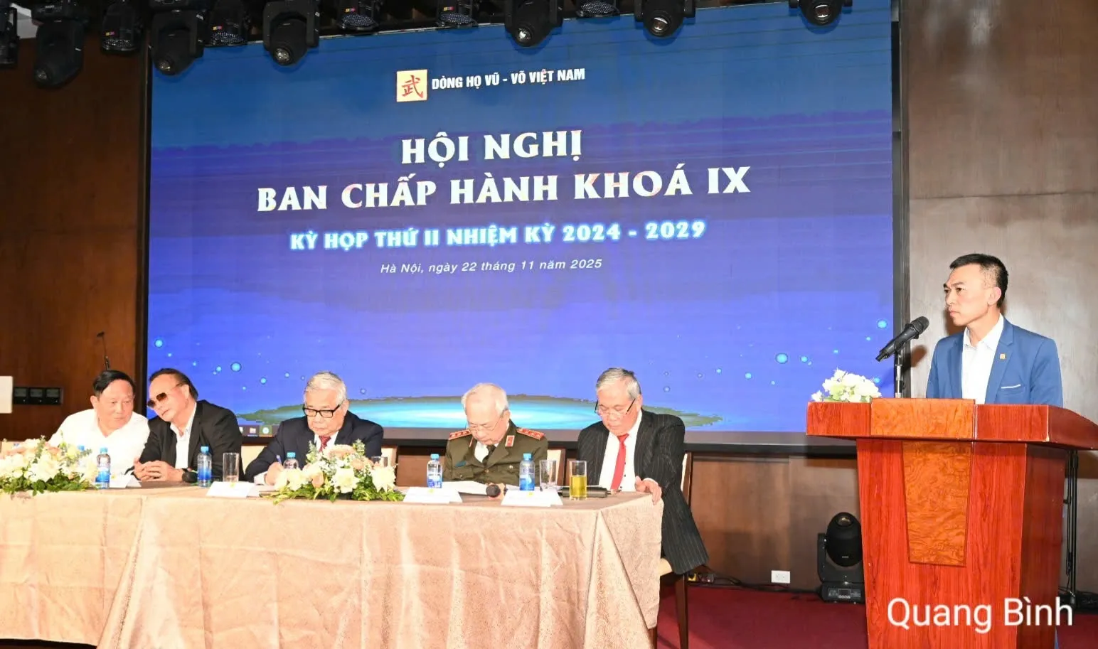 Vũ Văn Tuấn – Phó ban TĐKT , KHKT HDDH Vũ Võ Việt Nam báo cáo tại hội nghị