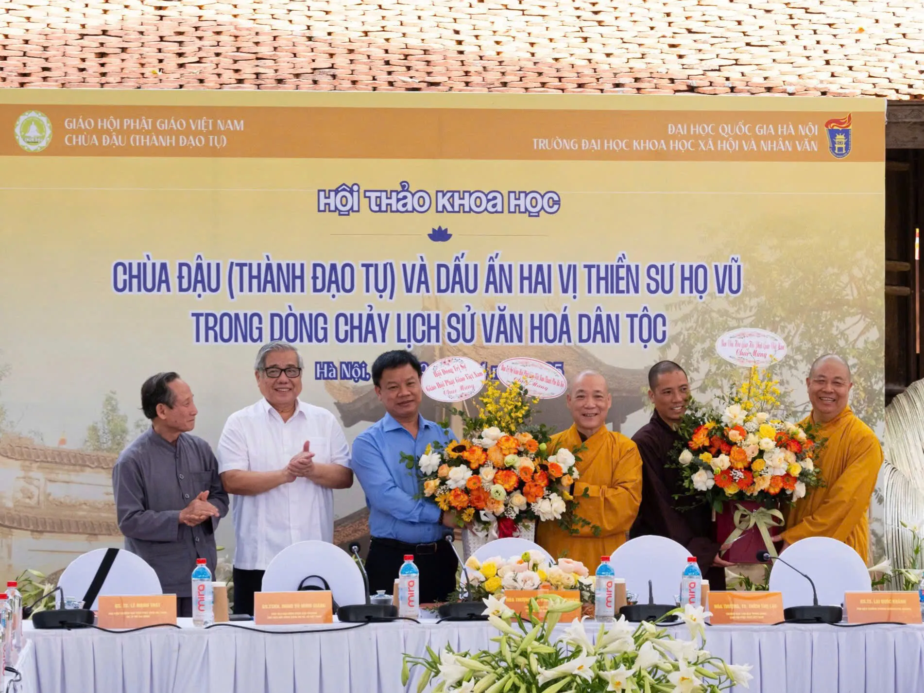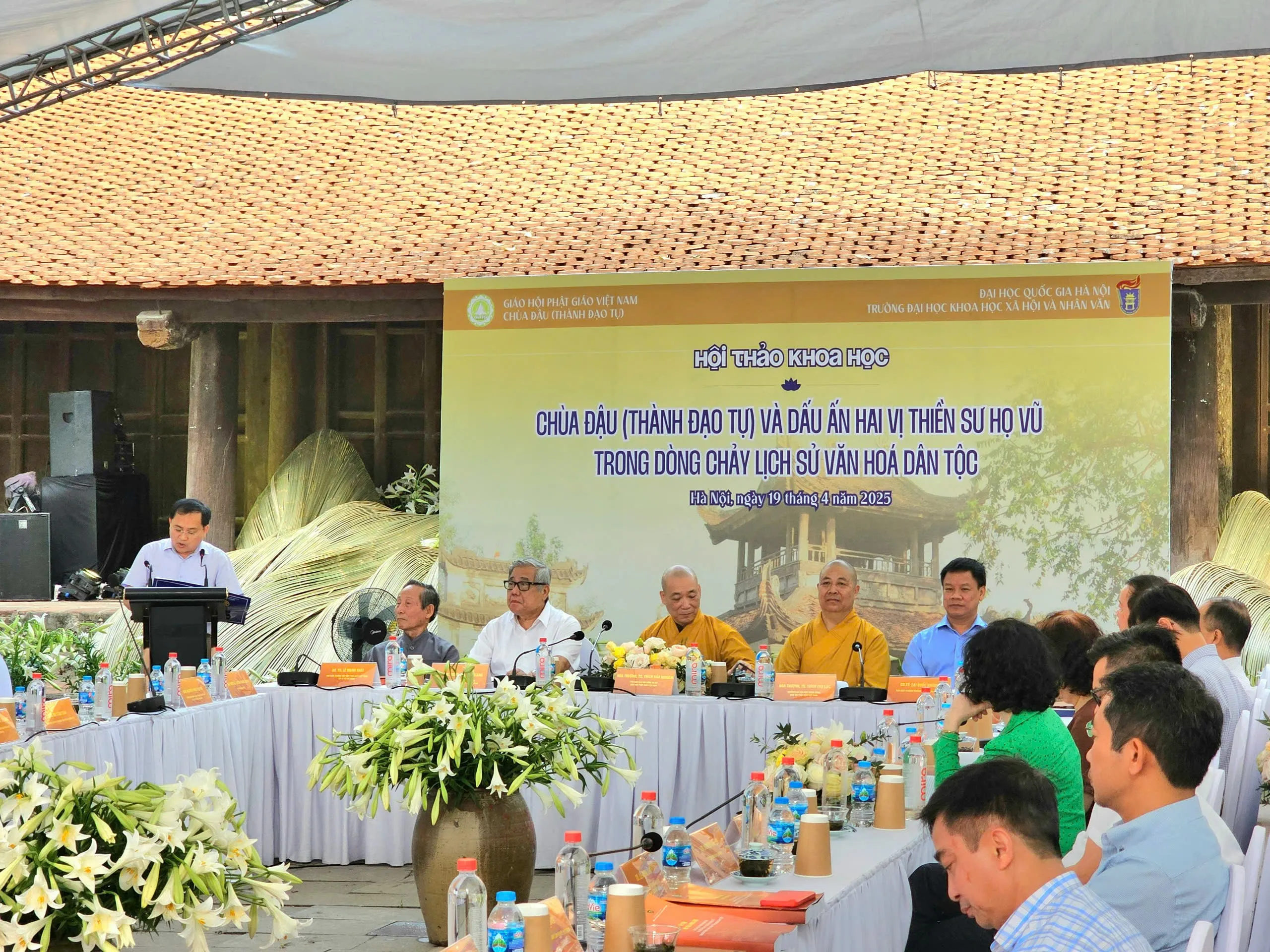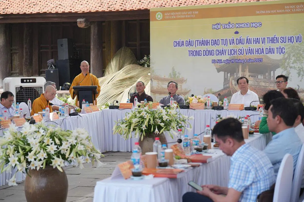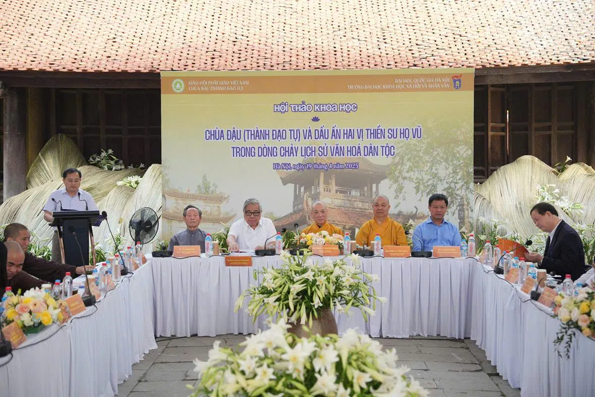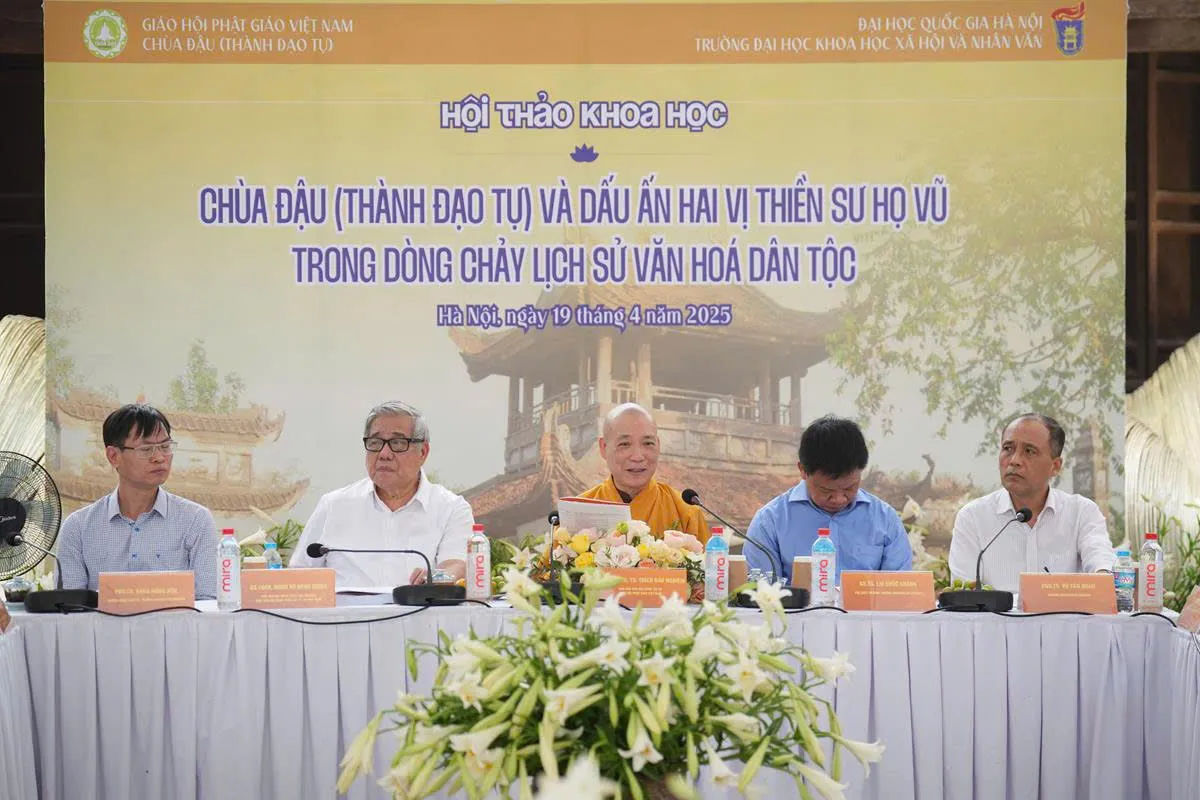 Nhằm làm sáng tỏ giá trị lịch sử và vai trò văn hóa của chùa Đậu trong dòng chảy Phật giáo Việt Nam nói riêng, lịch sử văn hóa dân tộc nói chung, đồng thời nghiên cứu sâu hơn về thân thế, hành trạng và công đức của hai vị thiền sư đáng kính: Đạo Chân (Vũ Khắc Minh) và Đạo Tâm (Vũ Khắc Trường), ngày 22 tháng 3 năm Ất Tỵ (Phật lịch năm 2568), tức ngày 19/4/2025, Trường Đại học Khoa học Xã hội và Nhân văn – Đại học Quốc gia Hà Nội đã phối hợp cùng Giáo hội Phật giáo Việt Nam và Chùa Đậu – Thành Đạo Tự tổ chức hội thảo khoa học với chủ đề: “Chùa Đậu (Thành Đạo Tự) và dấu ấn hai vị thiền sư họ Vũ trong dòng chảy lịch sử văn hóa dân tộc”