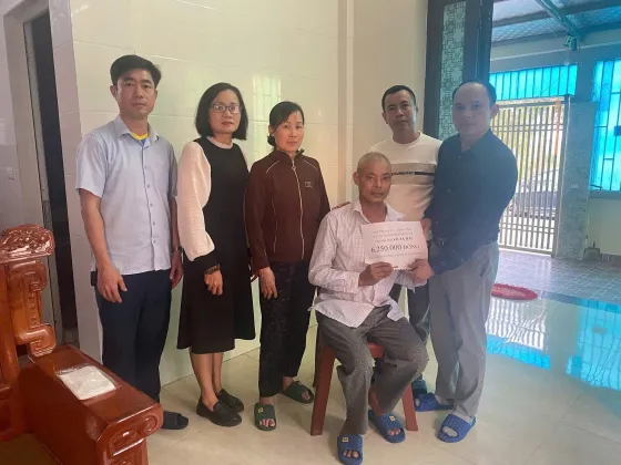 Em Võ Tá Hoài (38 tuổi), xã Lâm Trung Thủy, huyện Đức Thọ (cũ), bị tai nạn nặng, đã trải qua ba lần phẫu thuật não và hiện sống trong tình trạng thực vật. Vợ em không có việc làm ổn định, vừa chăm chồng, vừa nuôi con nhỏ; cuộc sống gia đình gần như bế tắc.