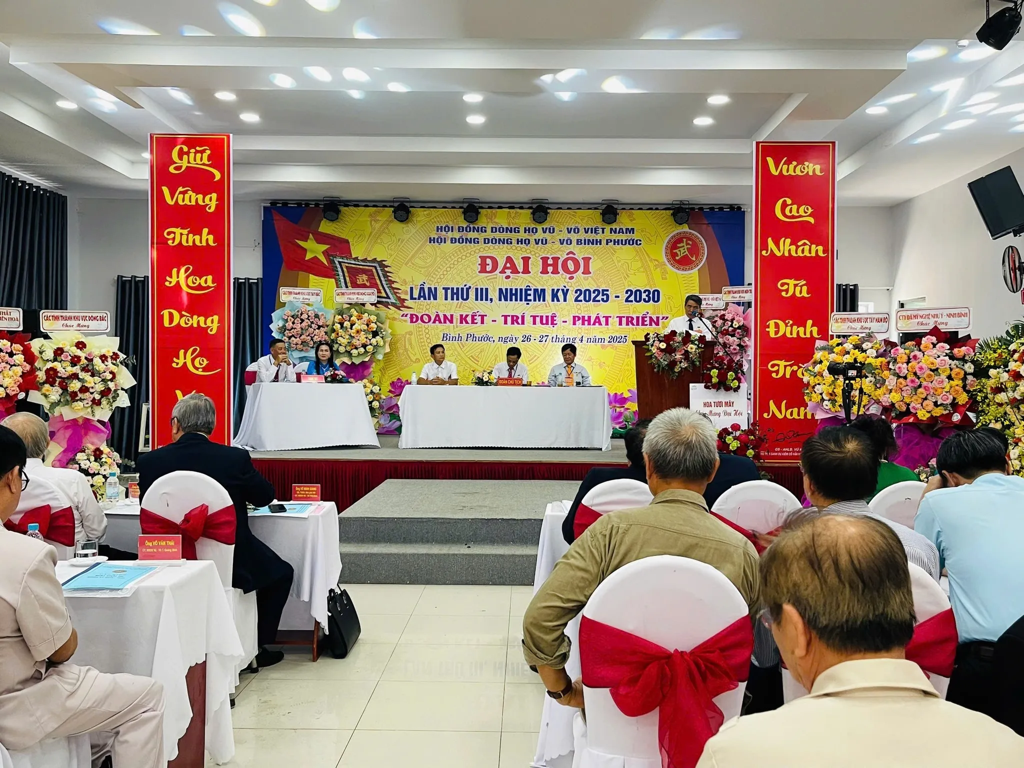 Sáng ngày 27 tháng 4 năm 2025, tại Nhà Khách tỉnh Bình Phước, Hội đồng Dòng họ Vũ – Võ tỉnh Bình Phước đã trọng thể tổ chức Đại hội Đại biểu lần thứ III, nhiệm kỳ 2025 – 2030. Đại hội vinh dự đón tiếp Giáo sư, Tiến sĩ Khoa học, Nhà giáo Nhân dân Vũ Minh Giang – Chủ tịch Hội đồng Dòng họ Vũ – Võ Việt Nam, cùng sự hiện diện của đông đảo đại biểu đại diện các Hội đồng Dòng họ Vũ – Võ đến từ nhiều tỉnh, thành phố trong cả nước.