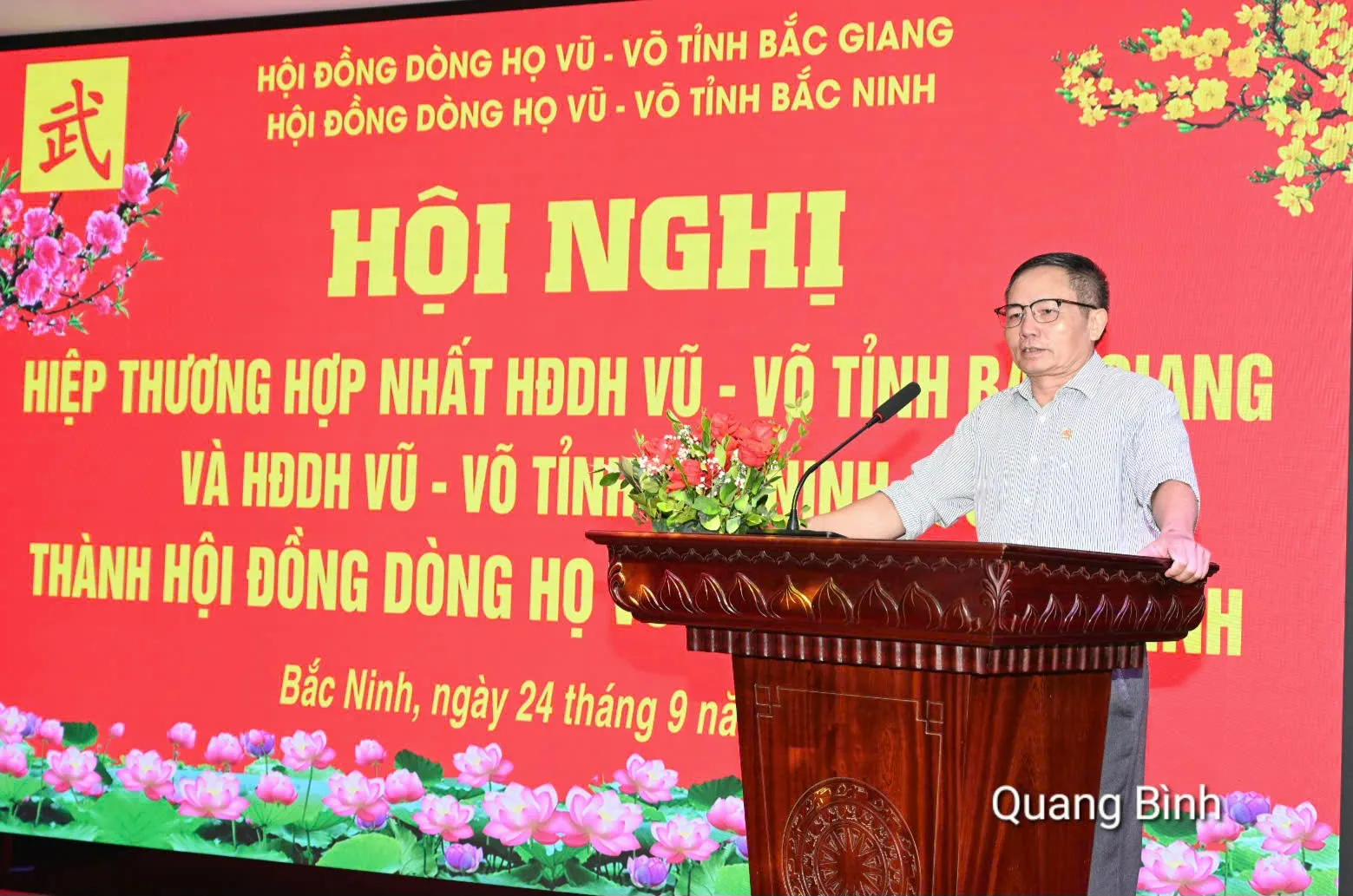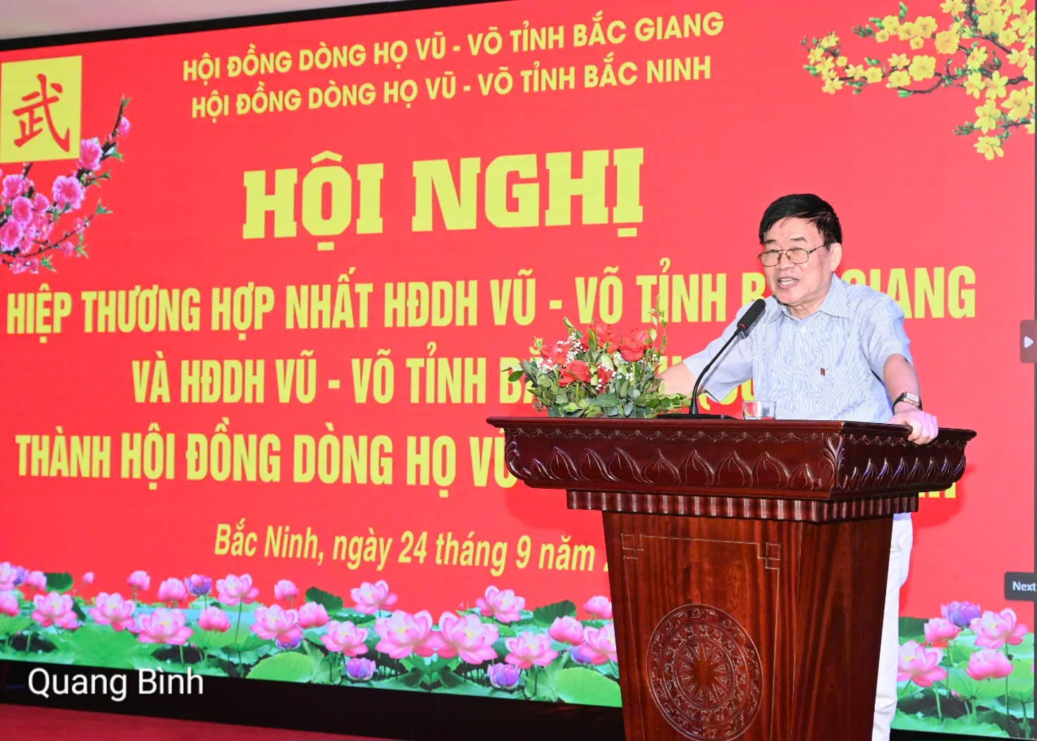 Thay mặt Ban chấp hành, Ông Vũ Anh Ninh, Chủ tịch HĐDH Vũ -Võ tỉnh Bắc Giang (cũ) đã trình bày Đề án hợp nhất Hội đồng dòng họ Vũ- Võ tỉnh Bắc Giang và Hội đồng dòng họ Vũ – Võ tỉnh Bắc Ninh (cũ) thành Hội đồng dòng họ Vũ – Võ tỉnh Bắc Ninh.