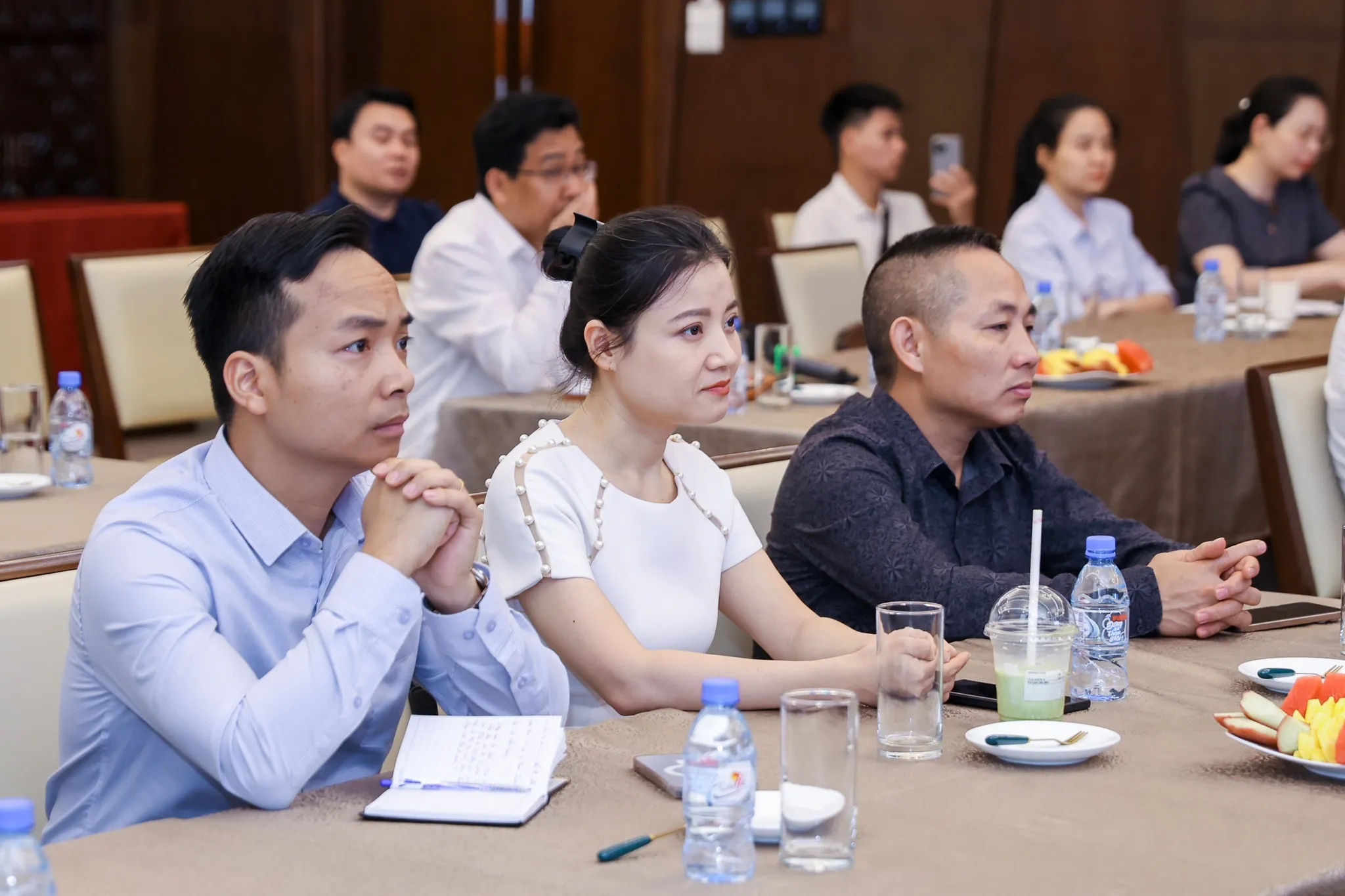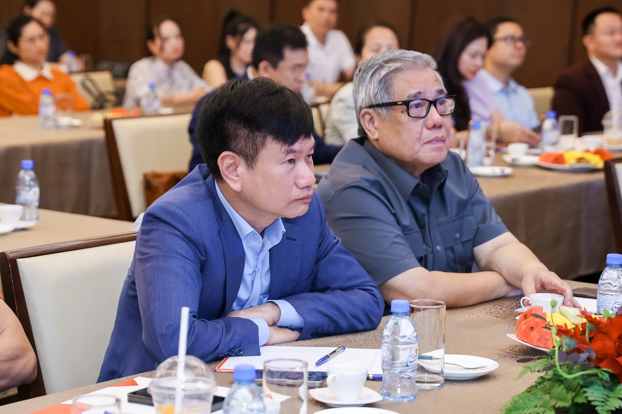 Trong khuôn khổ buổi tọa đàm, các nội dung nổi bật được trình bày bao gồm phân tích cục diện thương mại toàn cầu hiện tại, nhận diện rõ các thách thức và cơ hội đặt ra cho doanh nghiệp Việt, đồng thời gợi mở những chiến lược ứng phó hiệu quả nhằm hướng tới phát triển bền vững. Bên cạnh đó, phần giao lưu – hỏi đáp trực tiếp cùng GS.TS Vũ Minh Khương đã mang đến không khí trao đổi sôi nổi, giúp doanh nhân tham dự có thêm góc nhìn thực tiễn và chuyên sâu, khơi mở tư duy chiến lược để chuyển hóa khủng hoảng thành cơ hội, đưa doanh nghiệp vươn lên mạnh mẽ trong thời kỳ đầy biến động.