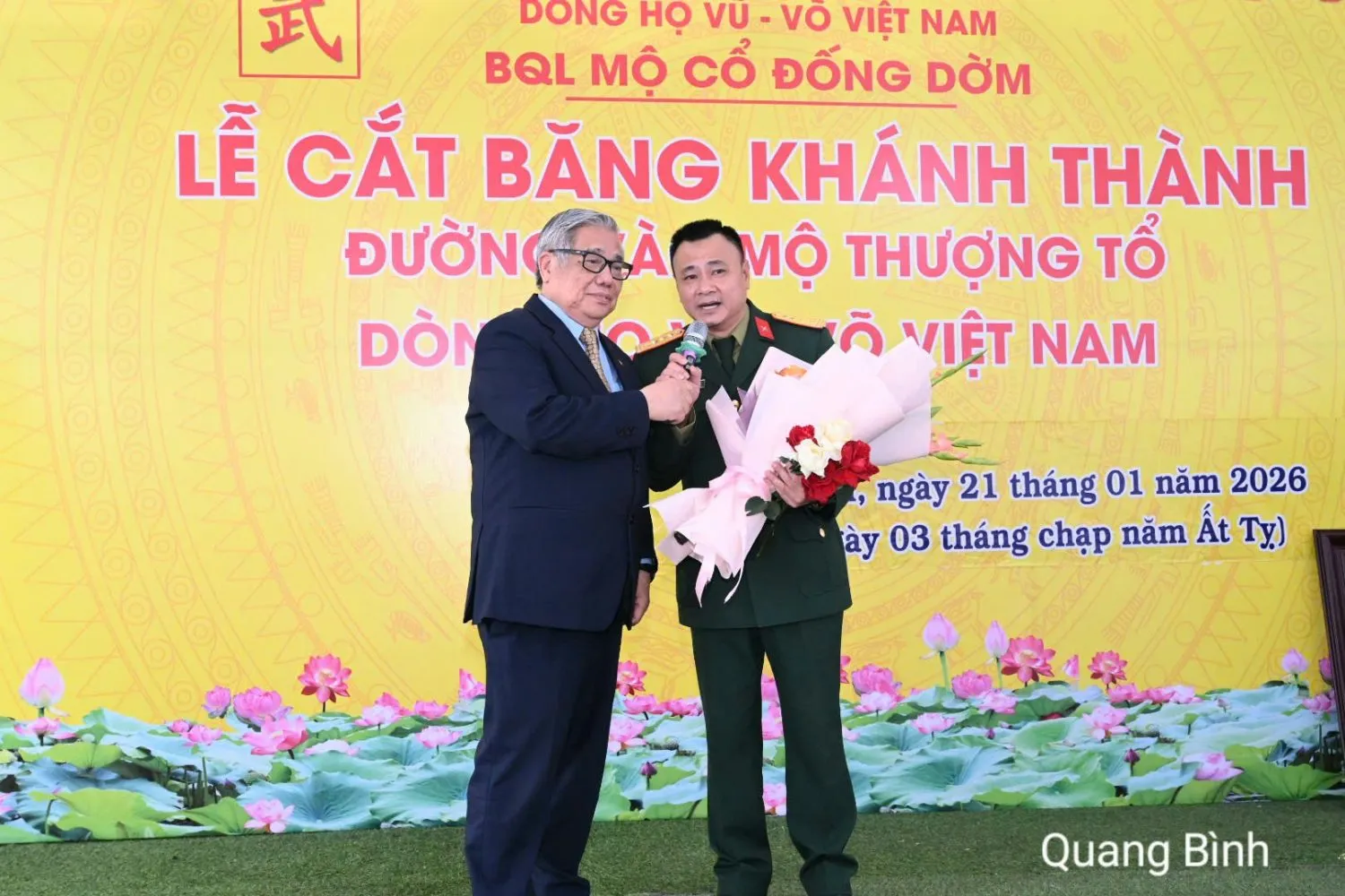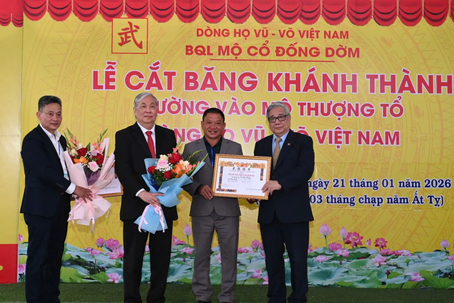 Ngày mùng 3 tháng Chạp âm lịch, trong làn mưa bay rất khẽ và cái rét vừa đủ để lòng người chậm lại, Ban Quản lý Mộ cổ Đống Dờm long trọng tổ chức Lễ cắt băng khánh thành con đường vào mộ Thượng Tổ dòng họ Vũ – Võ Việt Nam. Buổi lễ diễn ra đúng dịp kỷ niệm 1172 năm húy nhật Đức Thần Tổ Vũ Hồn – một thời khắc thiêng liêng, lắng sâu trong tâm thức con cháu muôn phương.