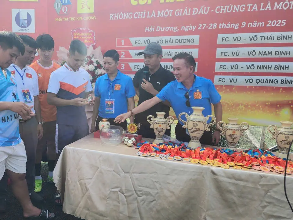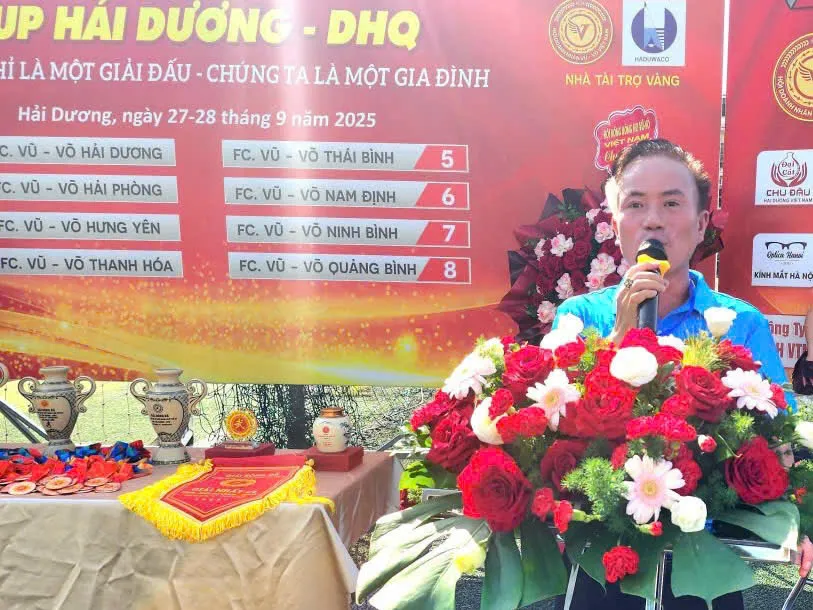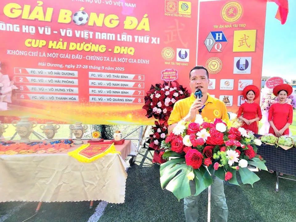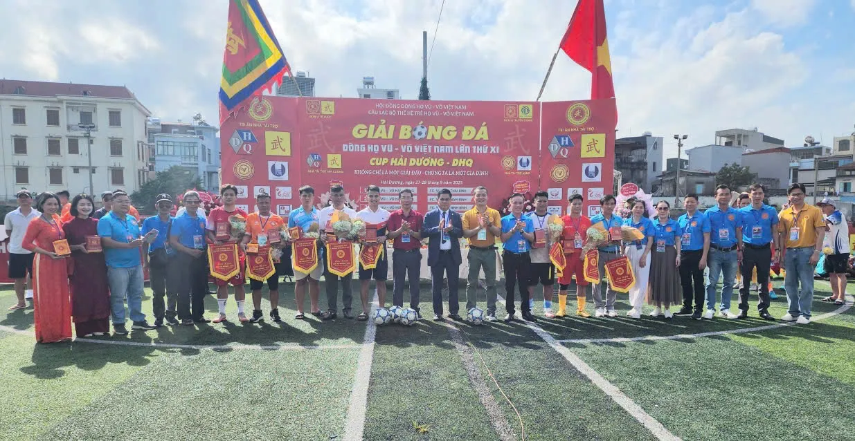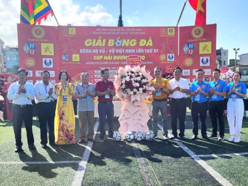 Trong không khí trang trọng và ấm áp nghĩa tình, buổi lễ vinh dự có sự hiện diện của ông Vũ Nguyên Thái, Phó Chủ tịch HĐDH Vũ – Võ Việt Nam, Chủ tịch HĐDH Vũ – Võ Hải Phòng; ông Vũ Chí Nghiêm, Ủy viên Ban Thường vụ HĐDH Vũ – Võ Việt Nam, cùng các thành viên Ban chấp hành HĐDH Vũ – Võ Việt Nam và tỉnh Hải Dương. Từ khắp mọi miền, bà con Vũ – Võ về sum họp đông vui, tạo nên một bức tranh hội tụ đầy tự hào. Đặc biệt, sự góp mặt của 8 đội bóng Vũ – Võ đến từ Quảng Bình, Thanh Hóa, Ninh Bình, Nam Định, Thái Bình, Hưng Yên, Hải Phòng và đội chủ nhà Hải Dương đã làm nóng lên không khí ngay từ đầu giờ sáng.