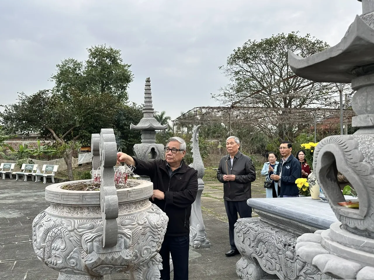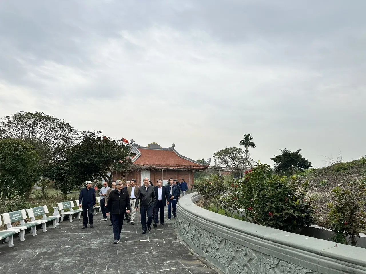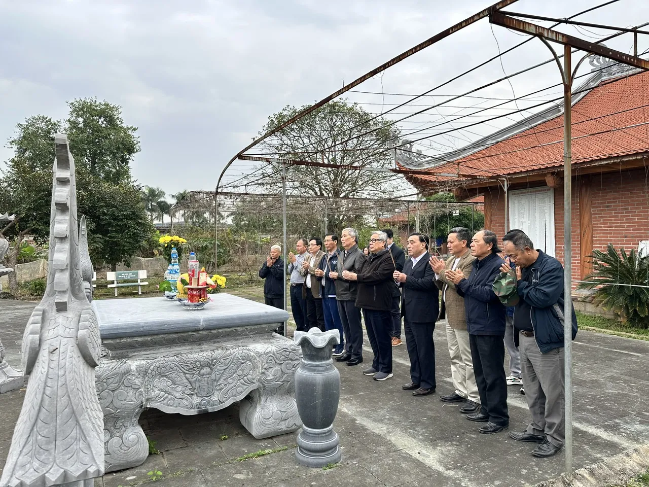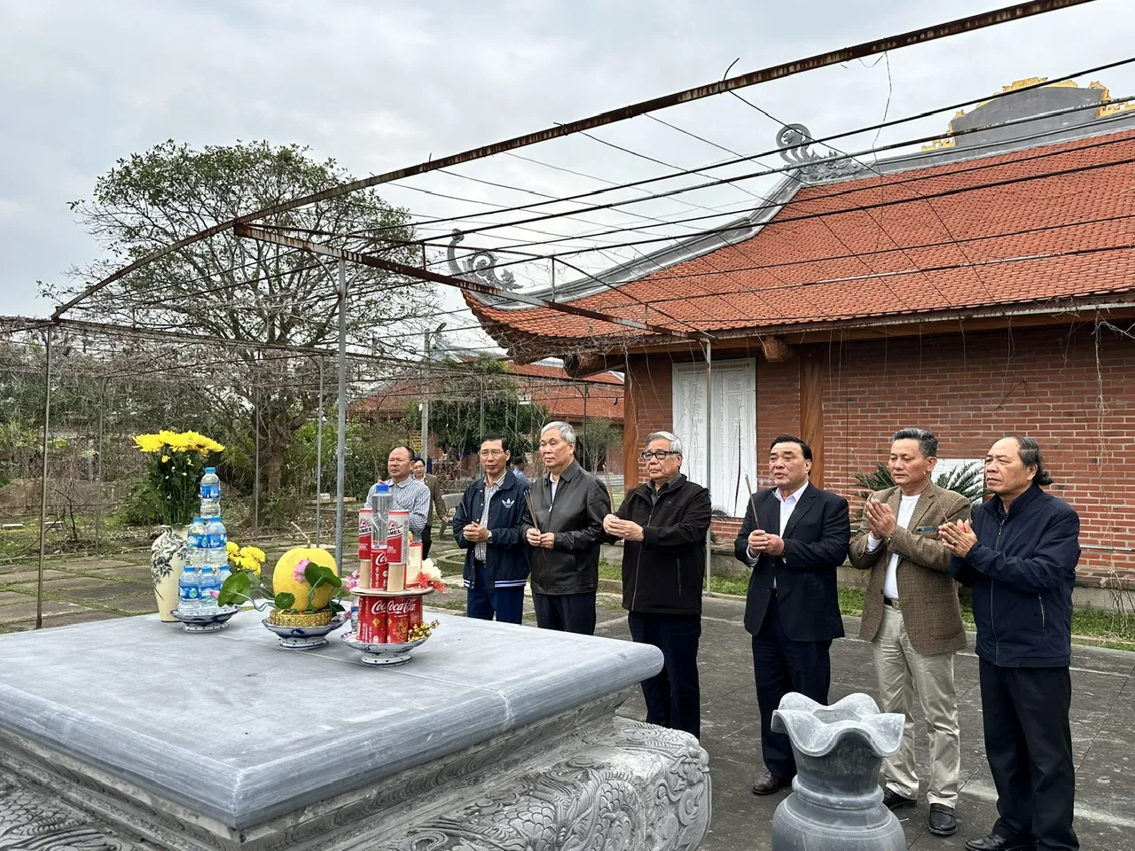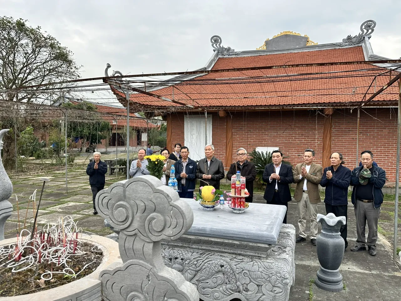 Tại công trường, các thành viên Ban Quản lý khu linh tích đã làm việc liên tục, không quản nắng mưa, tập trung cho các công đoạn đổ bê tông, kè đường, lu nền, rải cát sỏi… với tinh thần trách nhiệm cao, hướng về giá trị tâm linh chung của dòng họ.