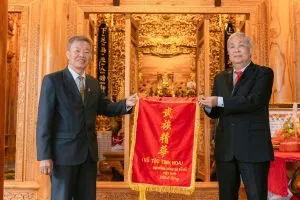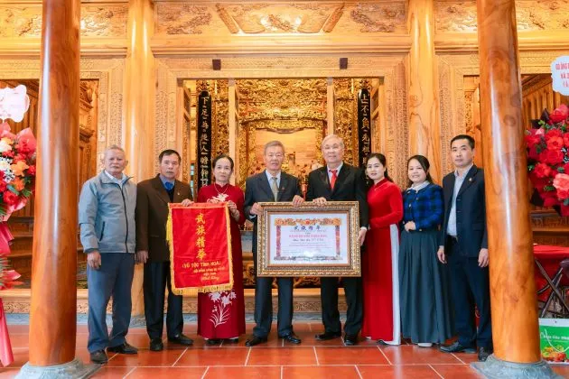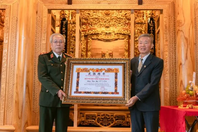 Trung tướng Vũ Thuật – nguyên Phó Tổng cục trưởng Tổng cục Kỹ thuật – Hậu cần (Bộ Công an), nguyên Giám đốc Công an tỉnh Hà Nam, hiện là Phó Chủ tịch Hội đồng dòng họ Vũ Võ Việt Nam tặng bằng Vũ Tộc Tinh Hoa cho nhà thờ họ Vũ Văn