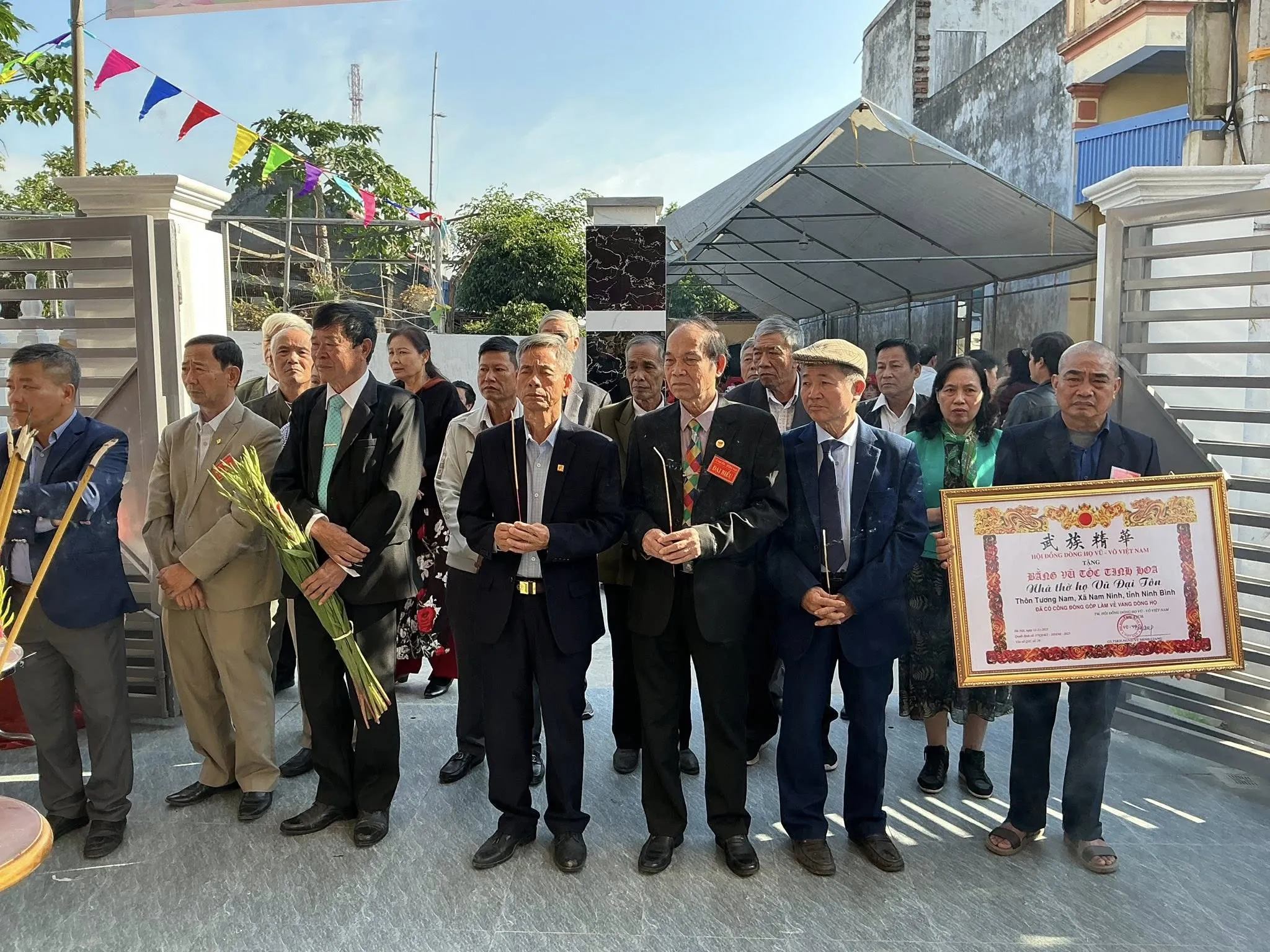 Thừa ủy quyền của Hội đồng Dòng họ Vũ – Võ Việt Nam, bà Vũ Thị Nhuần đã trịnh trọng trao Bằng Vũ Tộc Tinh Hoa cho Nhà thờ Họ Vũ Đại Tộc thôn Tương Nam – ghi nhận công lao của con cháu trong việc tôn tạo, giữ gìn và làm rạng danh dòng họ.