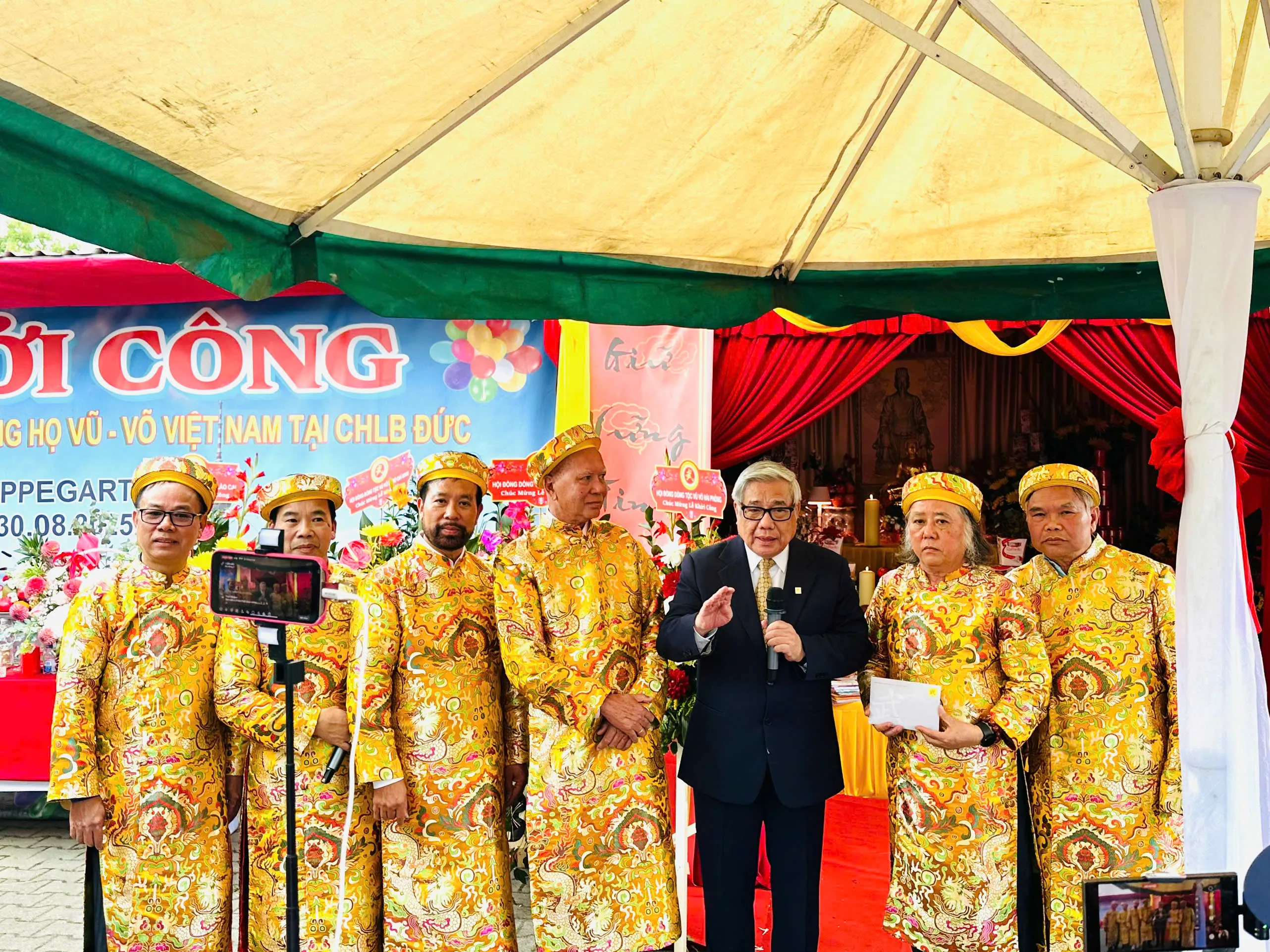 Phát biểu tại buổi lễ, GS.TSKH.NGND Vũ Minh Giang – Chủ tịch HĐDH Vũ – Võ Việt Nam – nhấn mạnh rằng, việc xây dựng Nhà từ đường tại Đức là thành quả của tình cảm, sự tự nguyện và tinh thần tương trợ bền chặt trong cộng đồng. Ông cho rằng, dòng họ Vũ – Võ tuy chỉ chiếm khoảng 4,7% dân số cả nước, nhưng lại có tỷ lệ đóng góp tri thức nổi bật, với số lượng tiến sĩ và nhân tài chiếm tới 12% trong tổng số những người tinh hoa. Truyền thống “nhân hậu – trí tuệ” đã trở thành giá trị cốt lõi, giúp dòng họ đóng góp nhiều nhân tài trong các lĩnh vực chính trị, quân sự, kinh tế và văn hóa.