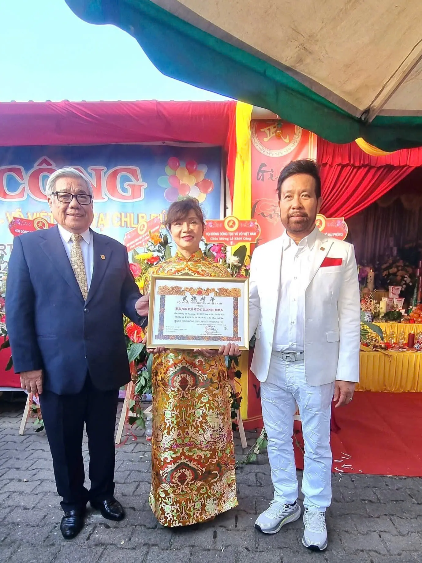 GS.TSKH.NGND Vũ Minh Giang – Chủ tịch HĐDH Vũ – Võ Việt Nam tặng bằng Vũ Tộc Tinh Hoa cho gia đình doanh nhân Võ Văn Long và chị Phan Anh Đào vì những đóng góp làm vẻ vang dòng họ.