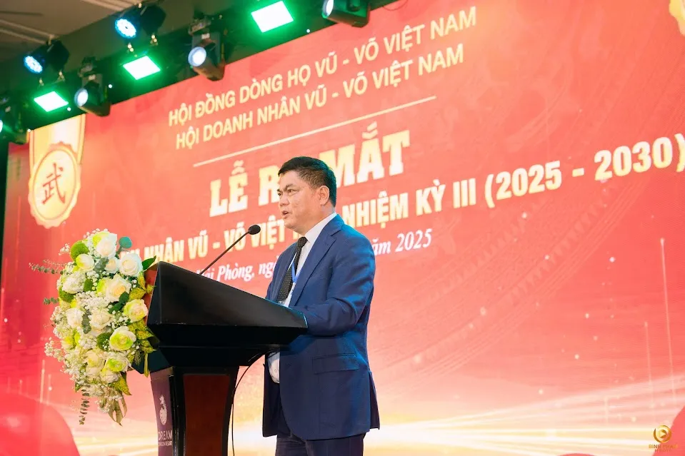 Cũng tại sự kiện, ông Vũ Nguyên Thái – Phó Chủ tịch Thường trực Hội và Chủ tịch Hội đồng dòng họ Vũ – Võ TP. Hải Phòng – đã có bài phát biểu đầy xúc động, chia sẻ hành trình hơn 30 năm xây dựng và phát triển tổ chức dòng họ tại Hải Phòng. Ông điểm lại những công trình tâm linh tiêu biểu do con cháu dòng họ đóng góp xây dựng, đặc biệt là Từ đường Vũ – Võ TP. Hải Phòng – một công trình có giá trị tâm linh và văn hóa lớn, được đầu tư quy mô với tổng giá trị lên đến gần 100 tỷ đồng. Những nỗ lực này thể hiện sự gắn bó mật thiết giữa đội ngũ doanh nhân và các hoạt động phụng sự dòng họ, phát huy văn hóa truyền thống trong đời sống hiện đại.