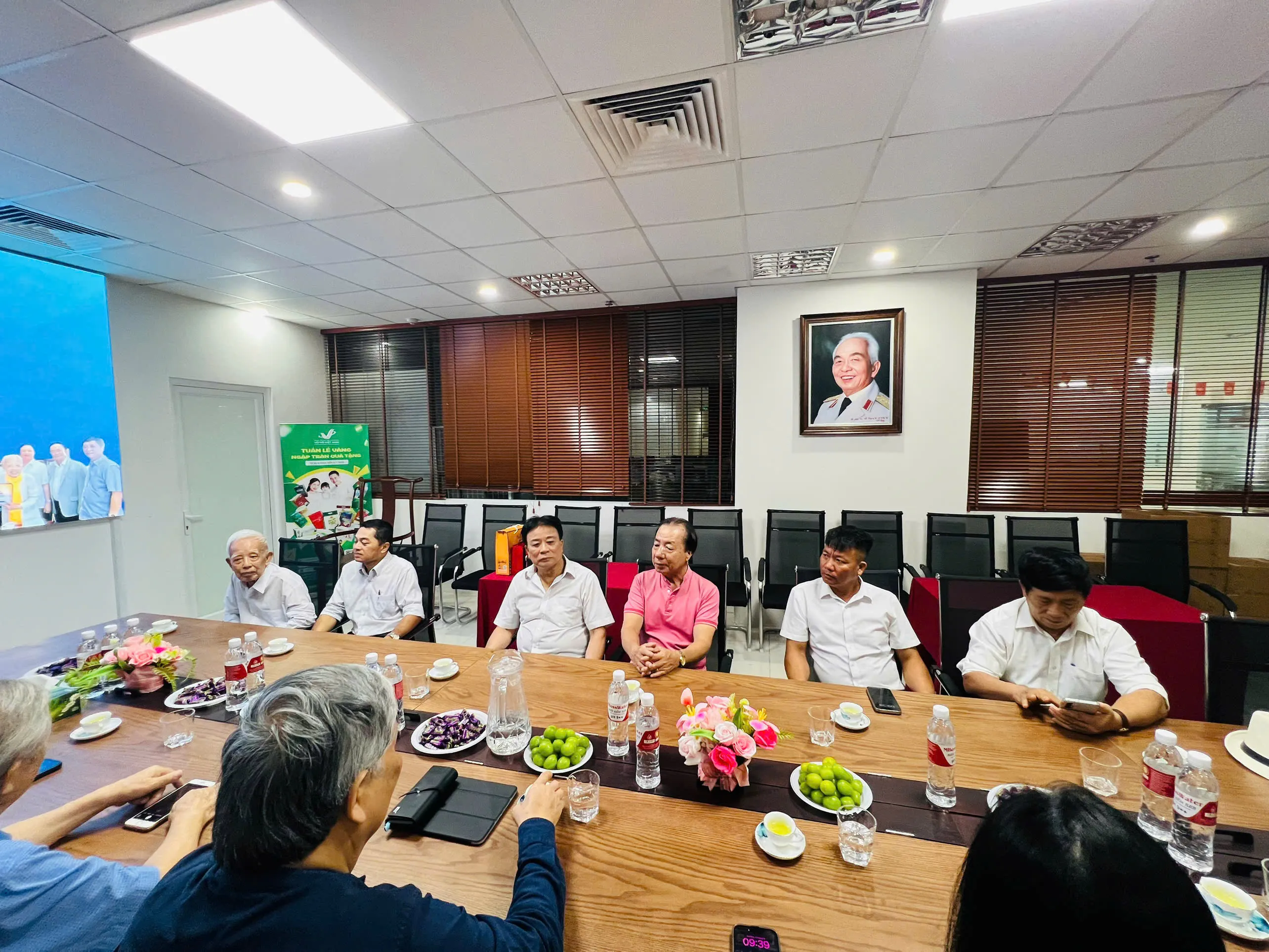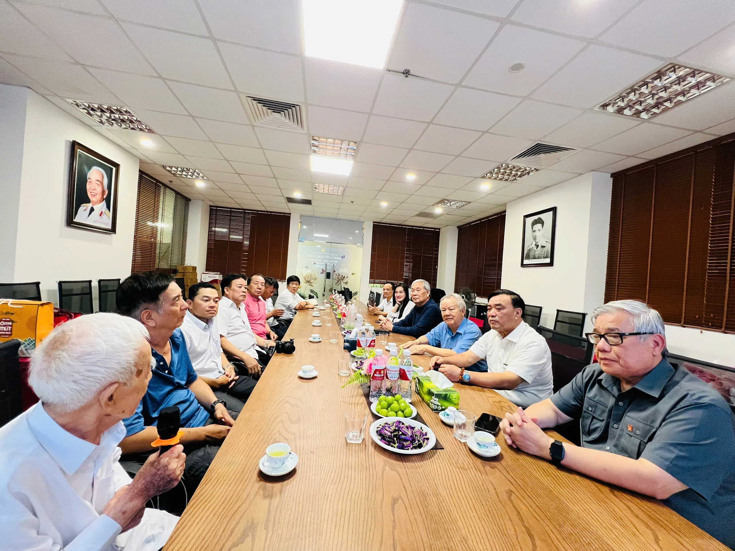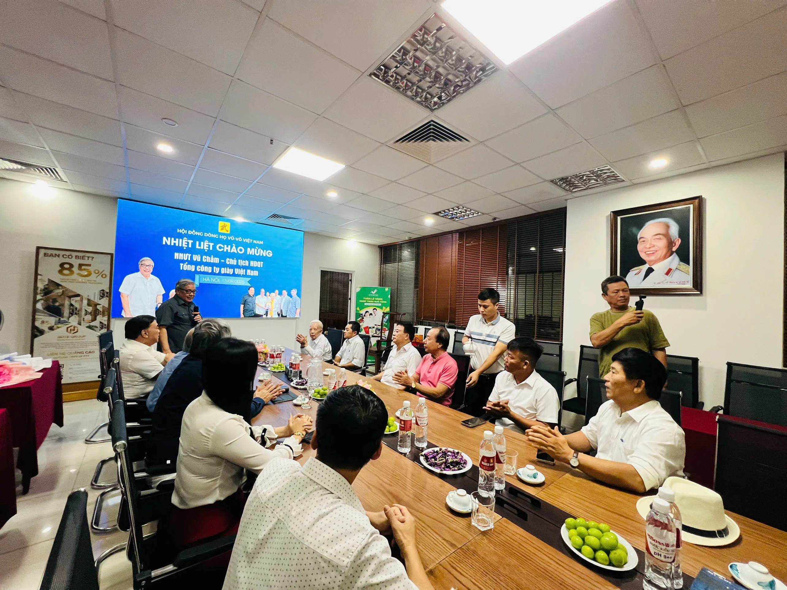 BLĐ Dòng họ chụp ảnh kỷ niệm với nghệ nhân Ưu tú Vũ Chầm tại Văn phòng Dòng họ Vũ – Võ Việt Nam