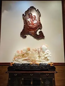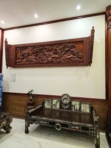 Một trong những dấu ấn đặc biệt trong sự nghiệp của ông Vũ Văn Quý là công trình bức trấn phong “Chiếu Dời Đô” – tác phẩm nặng gần 5 tấn với kích thước 3,85m x 4,85m, được thực hiện nhân dịp kỷ niệm 1000 năm Thăng Long – Hà Nội. Công trình này đã giúp ông nhận được bằng kỷ lục INET VN và ba chiếc cúp danh giá: Sản phẩm tiêu biểu, Doanh nhân tiêu biểu, và Doanh nghiệp tiêu biểu nghìn năm Thăng Long – Hà Nội cùng nhiều bằng khen khác. Đây không chỉ là niềm tự hào của cá nhân ông mà còn là dấu mốc quan trọng của nghề mộc mỹ nghệ truyền thống Việt Nam. |
