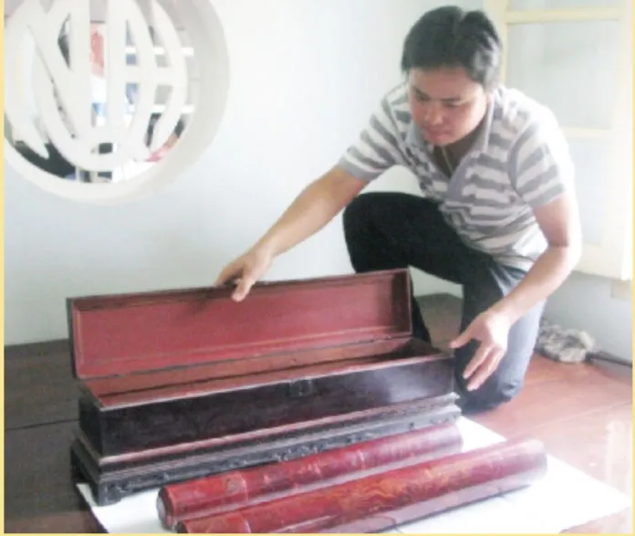 Hộp đựng sắc phong còn nguyên hình ảnh hoa văn (ảnh: M.Hiếu)