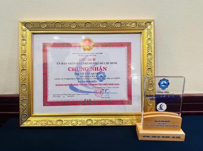 Trong năm 2024, Thuận Thiên Plastic nhận được hai giải thưởng danh giá: “Doanh nghiệp tiêu biểu TP.HCM” (dành cho công ty) và “Cá nhân xuất sắc TP.HCM” (dành cho Tổng Giám đốc Võ Văn Quyết). Đây là sự ghi nhận cho những đóng góp và nỗ lực của tập thể công ty trong việc cung cấp sản phẩm chất lượng, đồng thời khẳng định vai trò lãnh đạo hiệu quả của ông Võ Văn Quyết trong chặng đường phát triển của doanh nghiệp.