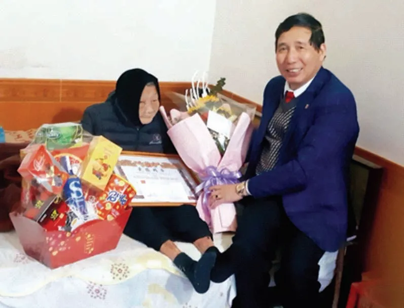 Ông Vũ Chí Nghiêm – Phó Chủ tịch TT HĐDH Vũ – Võ tỉnh Hải Dương thăm, chúc Tết và trao Bằng Vũ tộc Tinh hoa cho Mẹ Việt Nam anh hùng Vũ Thị Dưa – tuổi 99.