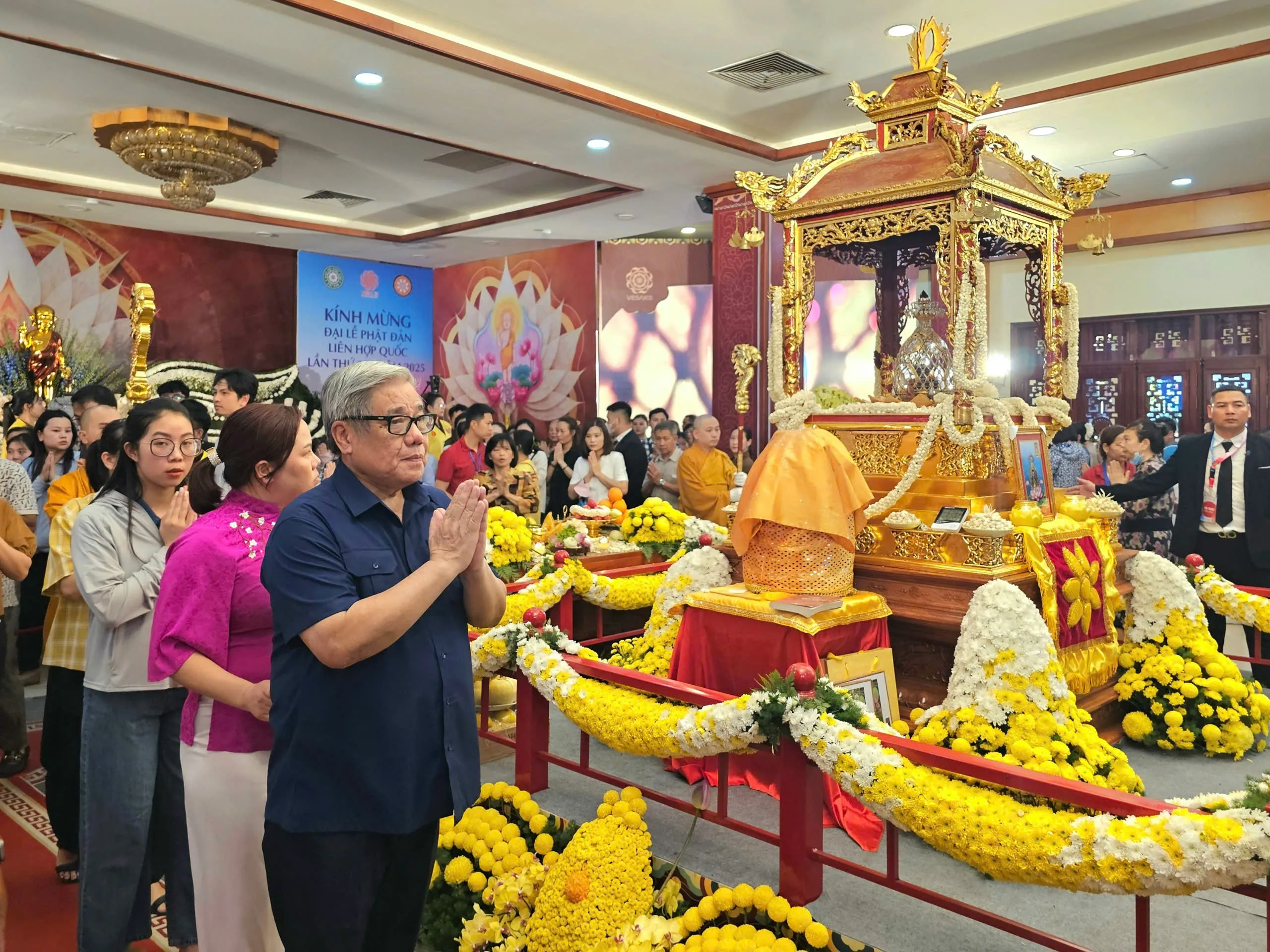 At Quan Su Pagoda – the headquarters of the Vietnam Buddhist Sangha – Prof. Vu Minh Giang expressed his deep reverence for the Buddha and paid tribute to the profound spiritual values embodied by the relics. These sacred relics not only hold great significance for the Buddhist community but also serve as a spiritual beacon for all humanity.