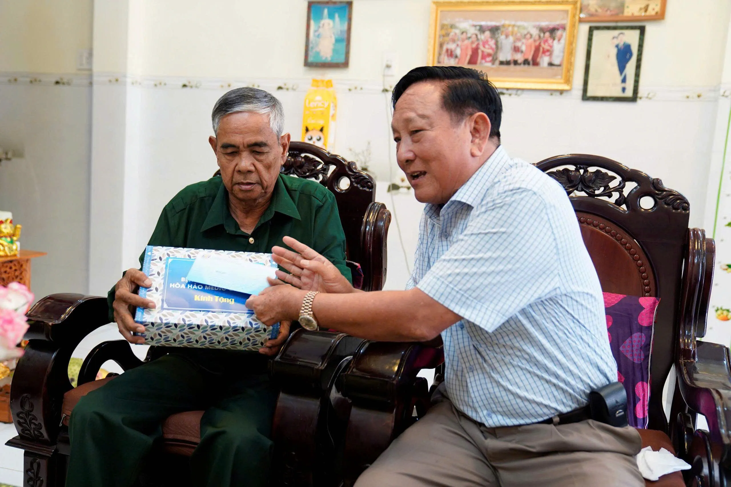 Tại mỗi nơi đến, Thiếu tướng Vũ Cao Quân đã ân cần thăm hỏi sức khỏe, đời sống tinh thần, chia sẻ những khó khăn bệnh tật và bày tỏ lòng biết ơn đối với những hy sinh, công lao to lớn của Bà mẹ Việt Nam anh hùng, Anh hùng LLVTND, những người có công trong sự nghiệp đấu tranh giải phóng dân tộc, thống nhất đất nước. Dịp này, Thiếu tướng cũng trao tặng quà và tiền hỗ trợ định kỳ quý III/2025 là 3 triệu đồng/người theo chính sách của Quỹ Đền ơn đáp nghĩa Bệnh viện Đa khoa Hòa Hảo-Medic Cần Thơ. Quỹ được trích từ lương của cán bộ, nhân viên của Bệnh viện.