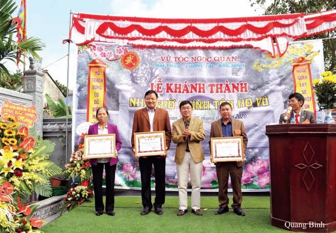 Ông Vũ Hồng Dương – Chủ tịch HĐDH Vũ – Võ tỉnh Bắc Ninh trao Bằng Vũ tộc tinh hoa cho các cá nhân có nhiều đóng góp cho dòng họ.