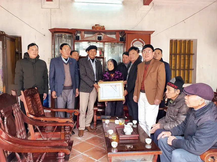 Trao tặng Bằng Vũ tộc Tinh hoa cho cụ Nguyễn Thị Thoa (dâu họ Vũ) tuổi 100 ở thị trấn Phố Mới – Quế Võ – Bắc Ninh.