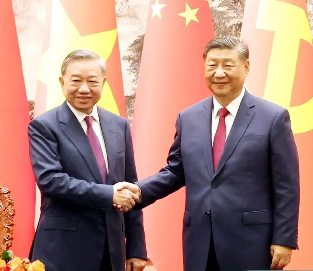 Tổng Bí thư Tô Lâm và Tổng Bí thư, Chủ tịch Trung Quốc Tập Cận Bình. Ảnh TTXVN