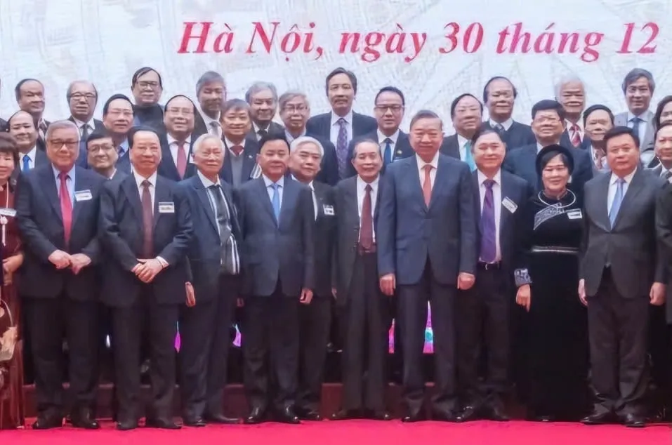 Tổng Bí thư Tô Lâm và các lãnh đạo Đảng, Nhà nước chụp ảnh cùng các trí thức, nhà khoa học.
